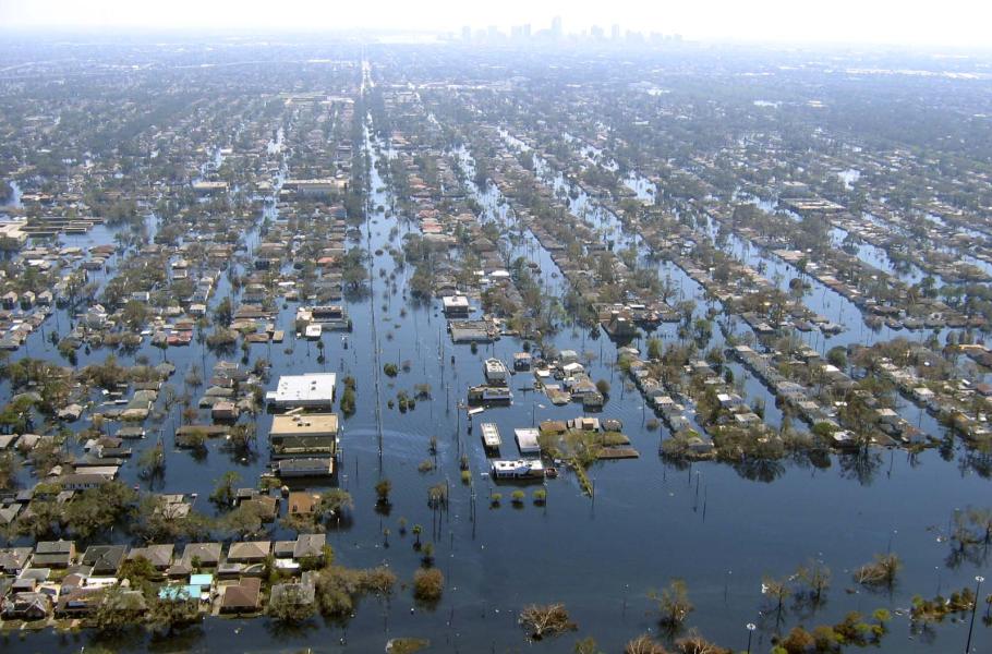 I v jeho případě je částečně na vině geografická poloha: Město leží v průměru 2 metry pod úrovní mořské hladiny a ze všech stran ho obklopuje voda – jezero Pontchartrain na severu, jezero Borgne na východě, na západě mokřady a bažiny a na jihu delta Mississippi. „V suchu“ jej udržují jen masivní hráze a potenciální riziko znamenají prakticky jakékoliv dešťové srážky, které je třeba odčerpat. Ne vždy se to však daří: Naposled se situace vymkla kontrole v roce 2005, kdy metropoli zasáhl hurikán Katrina a připravil o život 1 500 lidí.