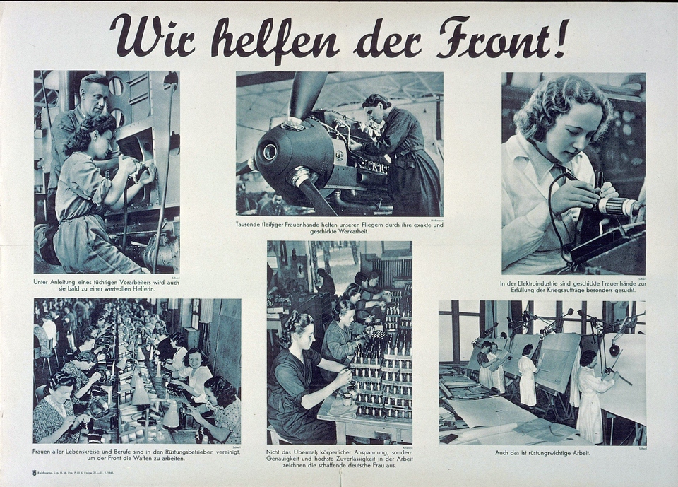 A toto vakuum musel někdo zaplnit. Například německá propaganda v jednom plakátu hlásala: „Ženy pracují ve vojsku doma!“ Tím vzletně říkala, že musí pečovat nejen o domácnost, ale také se zapojit do válečného fungování země. Do veřejného prostoru ženy po celé Evropě vstupovaly velmi pomalu od konce 19. století.