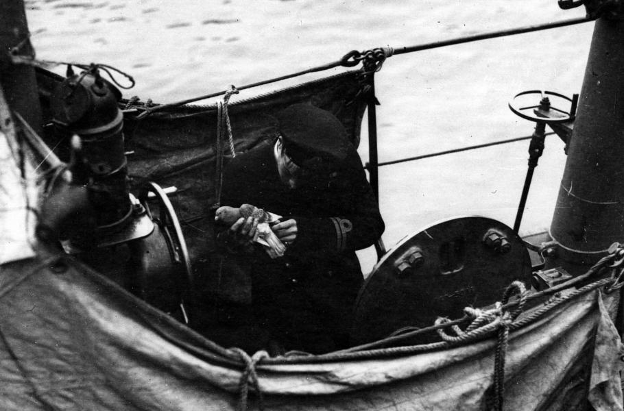Britský důstojník námořnictva připevňuje zprávu na nohu poštovního holuba. (foto: Alamy Stock Photo)