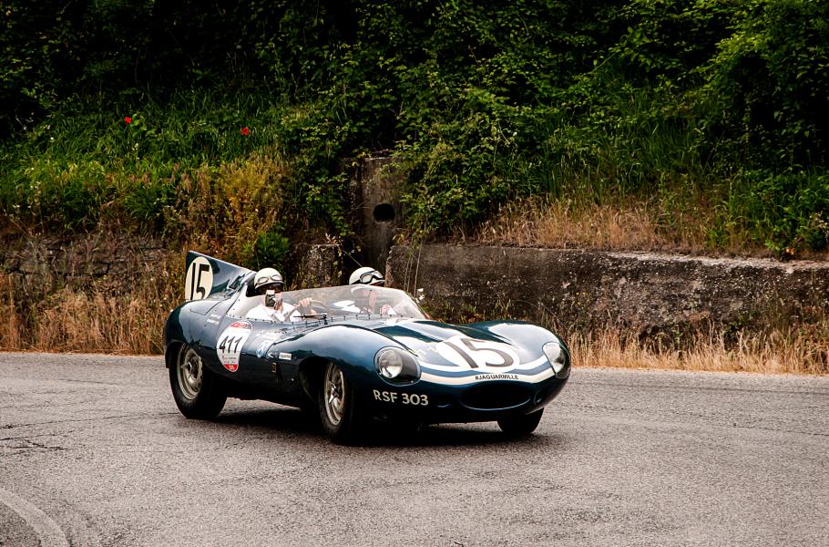 Tento typ Jaguaru se vyráběl v letech 1954–1957, přičemž vzniklo pouze 87 kusů. V roce 1956 se stal celkovým vítězem slavného vytrvalostního závodu v Le Mans. S maximem 278 km/h překonal o 3 km i v té době nejrychlejší Ferrari. Pro klání ve francouzském městě, kde rychlosti běžně překračovaly 240 km/h, dostalo auto masivní stabilizační ploutev, jež zlepšovala aerodynamické vlastnosti. V roce 1957 se pak objevila cestovní verze tohoto typu, určená pro jízdu na běžných silnicích.