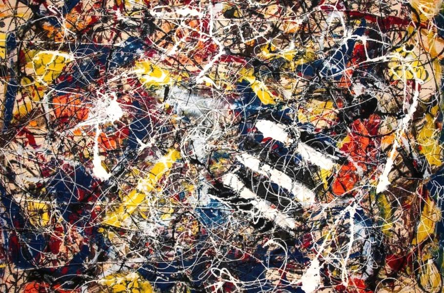 Při tvorbě svého mistrovského počinu nanášel Jackson Pollock barvu na podklad z dřevovláknité desky experimentálně stříkáním, kapáním a litím. Obraz vznikl roku 1948 a v následujícím roce se objevil na stránkách časopisu Life, který pak amerického abstraktního expresionistu proslavil. Horentní sumu v hodnotě 200 milionů dolarů za dílo v roce 2015 zaplatil investor Kenneth C. Griffin a dnes je obraz k vidění v galerii Art Institute of Chicago. (zdroj: Wikimedia Commons, PDM 1.0)