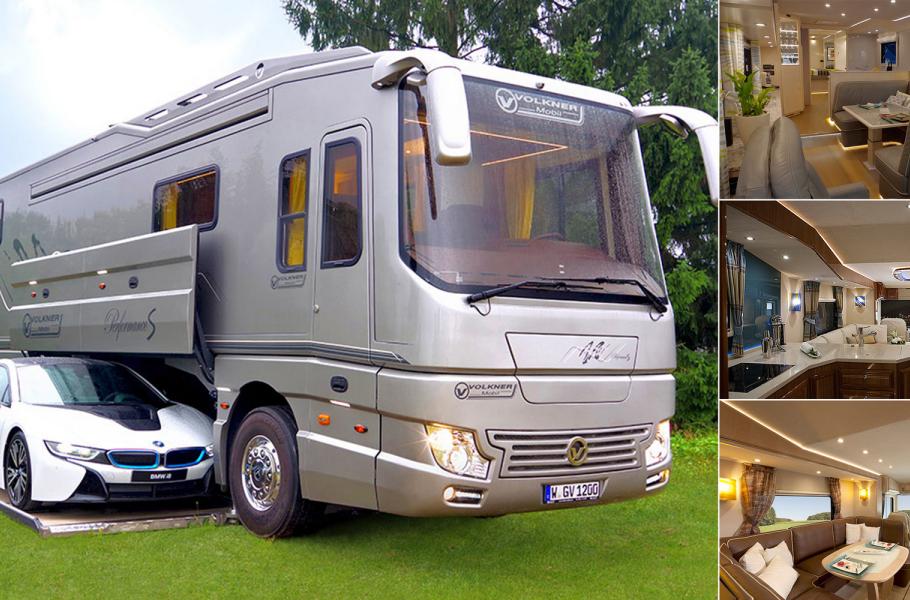 Mít luxusní bydlení s garáží a v něm sporťák, je sen mnoha (nejen) mužů. Německá firma Volkner Mobil nicméně dostala celý tento koncept na zcela novou úroveň, když představila modelovou řadu obytných aut Performance s patentovanou garáží. Za své peníze – které jsou samozřejmě nemalé – dostanete obdivuhodně luxusní obytňák s variabilním interiérem, nakonfigurovaný dle vašeho přání. To znamená pěkně vybavenou kuchyni, obývací pokoj, koupelnu, ložnici s královskou postelí a další náležitosti. Nároční zákazníci mohou sáhnout po vyjížděcí boční stěně, která přidá na prostoru, případně po elektricky sklápěné posteli nad pracovištěm řidiče. Ta největší zajímavost se ovšem ukrývá v samotném prostředku obytného vozu. Pod podlahou obytného prostoru totiž nalezneme útlou, automatizovanou garáž pro jedno auto.