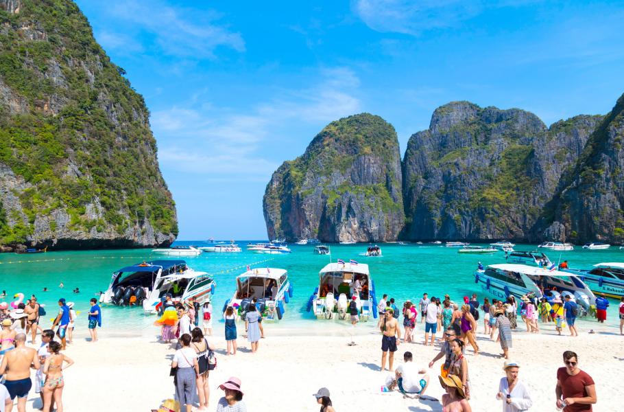 Průzračné moře, jemný bílý písek, korálové útesy... Nedotčená pláž na thajském ostrově Ko Phi Phi ztělesňovala ráj na zemi, jak jej popsal Alex Garland, autor knihy Pláž. Stejnojmenný film ovšem uhrančivému místu přinesl slávu – a s ní i zkázu. Po celosvětovém úspěchu snímku tam zamířily davy turistů a do nevelké zátoky se jich denně nahrnulo až pět tisíc. Thajsko ji nakonec nechalo v roce 2018 uzavřít a znovu ji otevřelo o čtyři roky později, ovšem s omezeními a s plány na revitalizaci. (foto: Shutterstock)