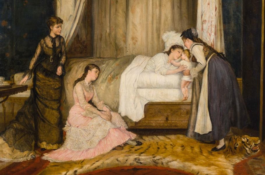 Osmnácté století přineslo pro obor porodnictví množství velkých změn. Porodní babky se účastnily přednášek, musely absolvovat praxi v nemocnici, procházely zkouškami před krajským ranhojičem a musely povinně nosit oficiální odznak. (ilustrace: Wikimedia Commons, CC0)
