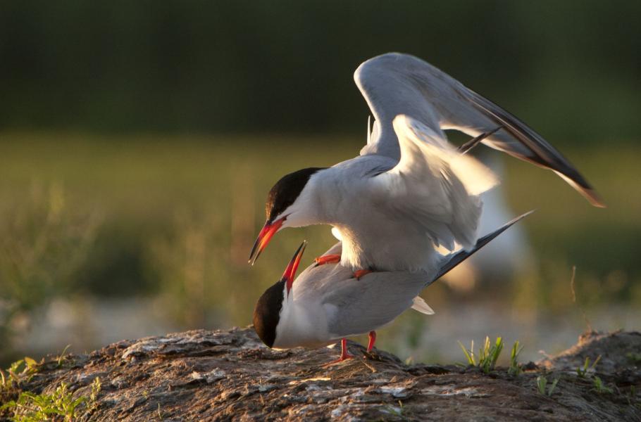 Začátkem dubna netrpělivě očekávám, kdy se na splavu objeví první rybák. Zpravidla nebývá sám. Malé hejnko se ale nezdrží. Jarní tah na hnízdiště má rychlejší průběh, než pozdně letní tah na zimoviště. Tehdy jsou u nás i s mladými podstatně déle. Těším se na jejich půvabný let, který se bleskovou vývrtkou mění ve střemhlavý útok. V záři podvečerního slunce se rozstřikuje voda a šťastný lovec se vynořuje i s kořistí. Spojení divoké dynamiky a měkkého světla mě vždy fascinuje. U lovce s úlovkem jsou však okamžitě útočící racci, kteří se mrštnějšího rybáka snaží oloupit.