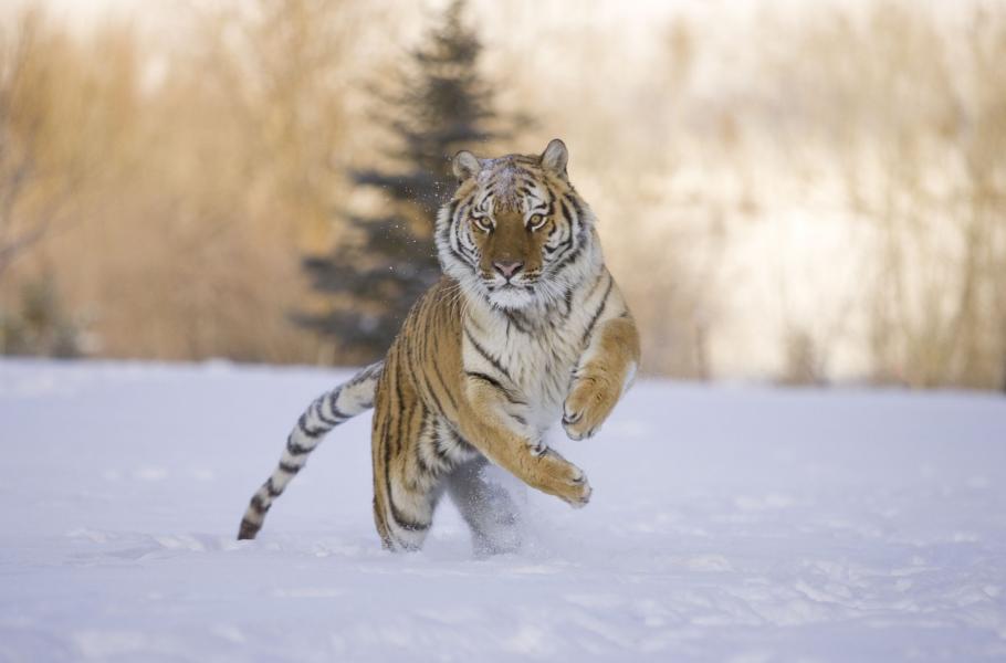 Tygr ussurijský (Panthera tigris altaica) je nejmohutnější kočkovitá šelma vůbec. Hmotnost samců se může vyhoupnout nad 300 kilogramů. Od hlavy ke konci ocasu měří největší kusy 330 cm, přičemž na ocas připadá zhruba metr. Typická je pro něj dlouhá a hustá srst s méně výrazným pruhováním. Dříve se vyskytoval v prostoru mezi Bajkalem a Tichým oceánem, dnes žije asi pět stovek těchto tygrů na ruském Dálném východě a malá populace snad přežila v severní Číně při ruských hranicích. (foto: Shutterstock)