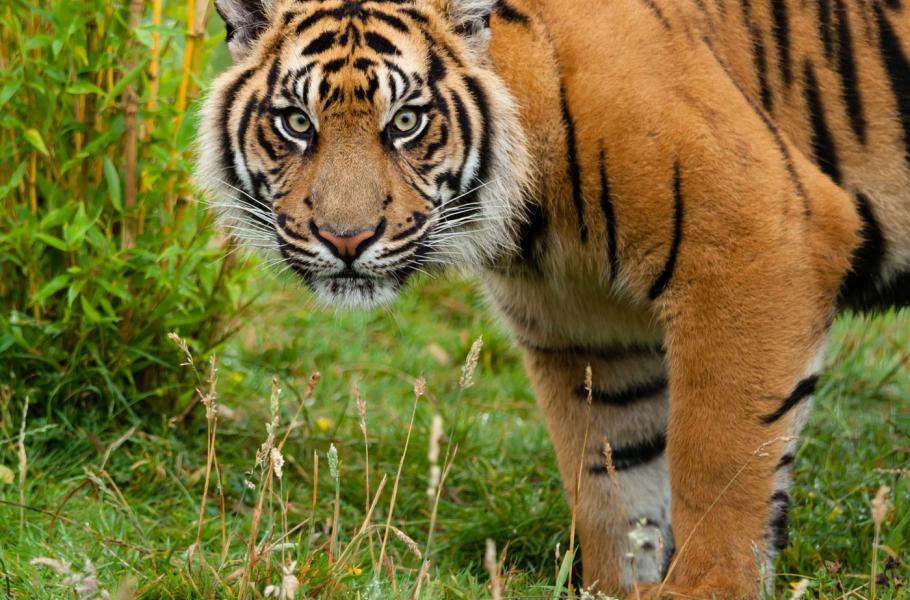 Tygr sumaterský (Panthera tigris sumatrae) je nejmenší tygřím poddruhem. Samci váží kolem 130 kg, samice cca 90 kg. Dorůstají délky do 240 cm. Je pro něj typická řada anatomických znaků a charakteristické je i sytě hnědooranžové zbarvení srsti s výraznými černými pruhy. Někteří zoologové jej proto považují za samostatný druh. Na indonéském ostrově Sumatra dnes žije možná až 450 kusů, údaje o stavech těchto tygrů jsou ale krajně nespolehlivé. (foto: Shutterstock)