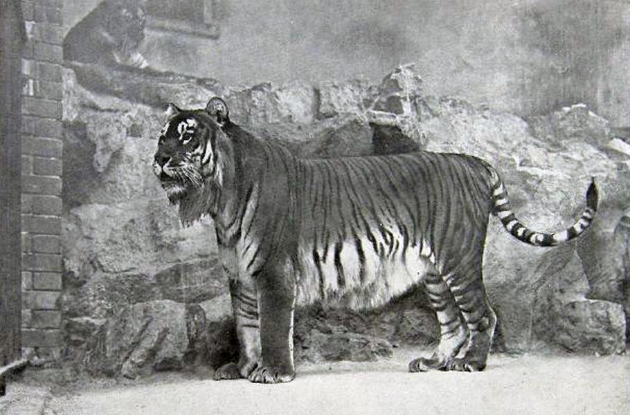 Tygr balijský (Panthera tigris balica) také patřil k menším poddruhům. Samci měřili něco přes dva metry a vážili kolem 100 kg. Samice byly o něco menší a vážily kolem 70 kg. Žil na ostrově Bali, kde poslední kus uhynul v roce 1937. (foto: Wikimedia Commons, O. Vojnich, PDM 1.0)