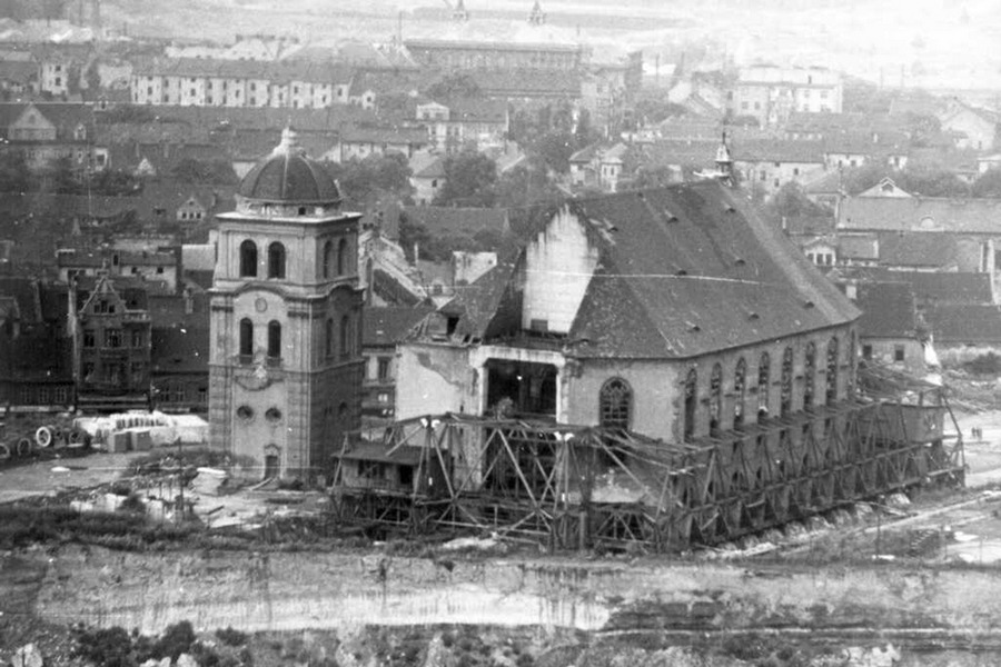 Také Česko má svou zkušenost s podobným typem projektu. V roce 1975 byl v Mostě, kvůli rozšiřující se těžbě uhlí, přesunutý o 841 metrů Kostel Nanebevzetí Panny Marie. Samotná operace odstartovala 30. září krátce před polednem. Kolejová dráha, po které se měl na hydraulických vozících kostel posouvat, měla obloukový půdorys a byla dlouhá 841 metrů se sklonem 12,3 promile. Kostel se po ní posunoval nepřetržitě rychlostí 1,2 až 3,2 cm za minutu. Náročný transfer byl ukončen po 27 dnech - 27. října 1975. Stěhování mosteckého kostela je zapsáno v Guinnessově knize rekordů jako přeprava nejtěžšího předmětu po kolejích. I s ocelovou výztuhou a podvozkem vážil zhruba dvanáct tisíc tun.