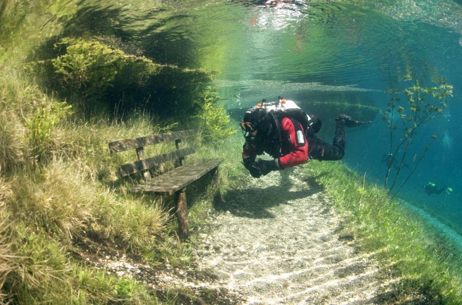 Strom, most nebo lavička – na poměrně neobvyklé objekty láká potápěče Zelené jezero v oblasti Tragoess v rakouském Steiermarku. Zvláštní podívanou má na svědomí skutečnost, že na jaře, když roztají ledovce, stoupne hladina ze dvou metrů až na dvanáct. Podvodní divadlo však netrvá dlouho: Končí už v červnu, kdy voda opět opadá.