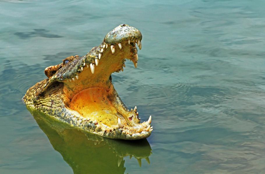 Je zvláštní, že krokodýli, jejichž chování je jinak velmi přímočaré (ve stylu „zaútoč a sežer“) dokážou údajně dlouhé minuty nechat potenciální kořist poskakovat ve své tlamě. Pokud je toto chování skutečné, muselo se vyvíjet vzájemně u obou skupin po velmi dlouhou dobu. (foto: Shutterstock)