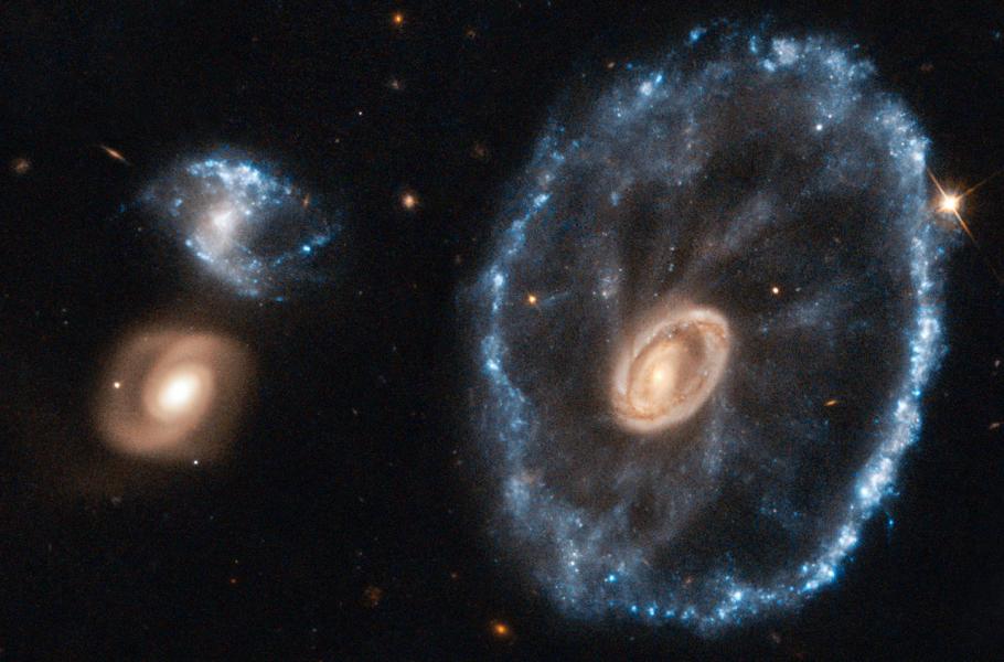 Pokud projde malý „projektil“ přímo středovou částí terčové galaxie, rozšíří se od místa průletu rázová vlna a vyvolá středově symetricky probíhající utváření stálic. Ze správného pohledu pak mohou nová místa jejich vzniku formovat rozsáhlé prstence kolem zdánlivě méně aktivního galaktického jádra.