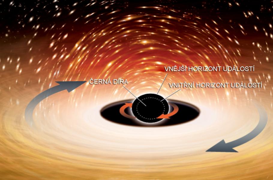 Vědci v současné době rozlišují dva typy černých děr: hvězdné černé díry coby pozůstatky vývoje velmi hmotných stálic a černé veledíry, jež se nacházejí v centrech galaxií. O jejich vnitřní struktuře mnoho nevíme, protože známé fyzikální zákony tam v běžně podávané formě přestávají platit. Každého černého giganta však bez ohledu na to, co se skrývá uvnitř, obklopuje tzv. horizont událostí. Jde o plochu, na níž úniková rychlost dosahuje rychlosti světla. Částice vyskytující se nad horizontem událostí mohou od černé díry uniknout, ty pod ním už nikoliv.