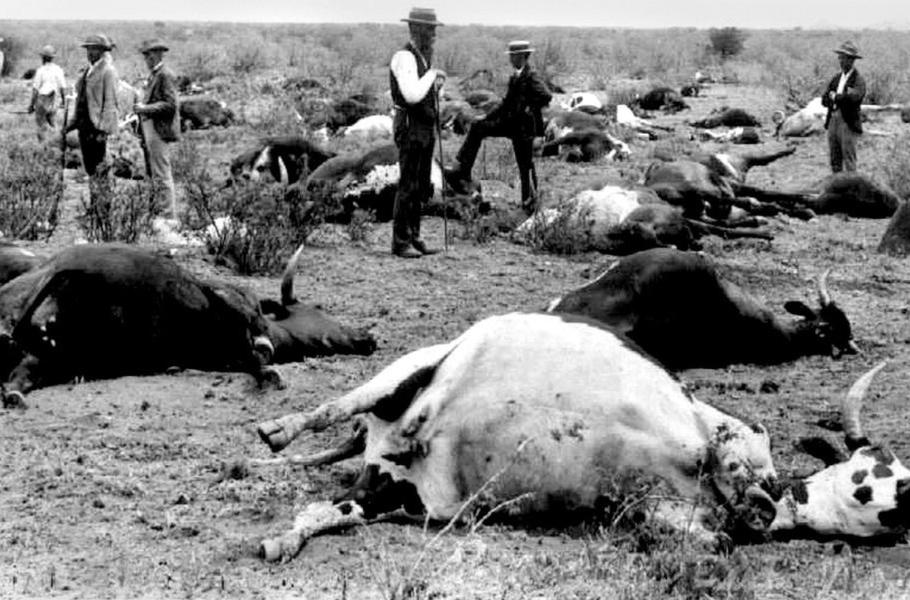Klíčem k správné interpretaci obrazu východní Afriky, kterou výprava projížděla, je pohled zpět do roku 1887. Tehdy u Afrického rohu (Somálský poloostrov) přistála nepočetná italská výzkumná výprava, která s sebou mimo jiné vezla hospodářská zvířata z Asie. Některá z nich byla nakažena dobytčím morem, jenž se velmi rychle rozšířil ve východní části Afriky a postupoval na jih. Britská koloniální správa v jižní Africe se pokusila zastavit nemoc více než 1 500 km dlouhým plotem z ostnatého drátu a odstřelováním nemocných kusů, ale vše bylo marné. Dobytčí mor se stal největší přírodní pohromou, která Afriku v moderní době postihla.