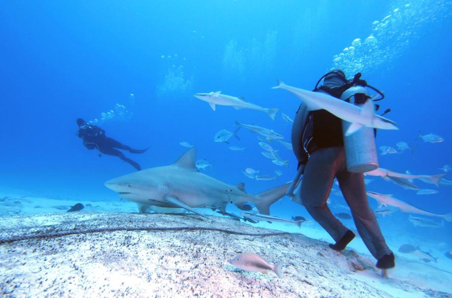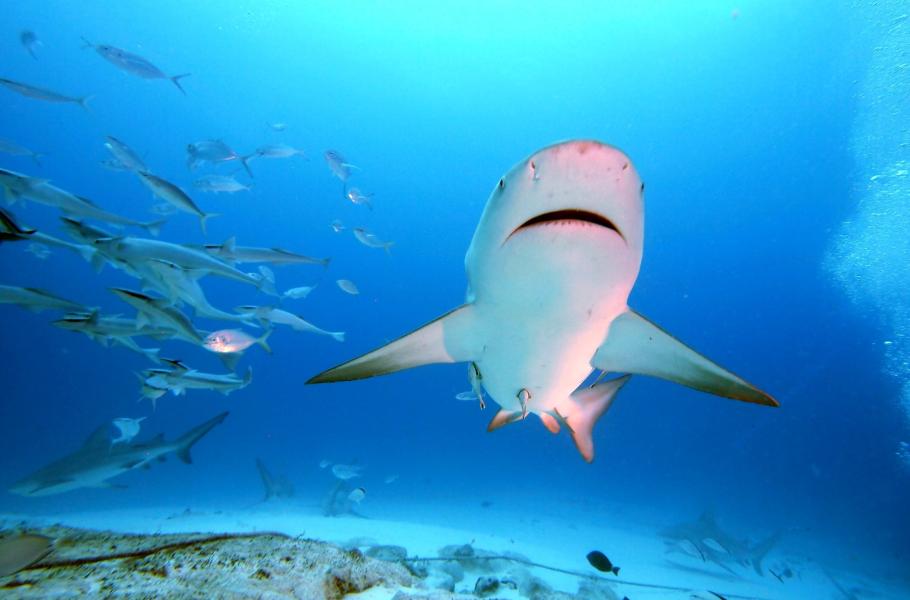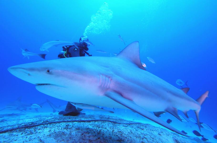 Pod vodou bývají často proudy, někdy slabší, někdy silnější. Stáváte se diváky a začíná to nejhezčí podvodní divadlo. Jak sám Jorge před ponorem říká, býčí žraloci jsou větší než my. Delší, těžší, ale i krásnější než my, lidé. Každý má sice jiná měřítka krásy, ale já jsem ochotna dát mu za pravdu. Kolem nás, nad námi, za námi, před námi se ladně vznáší sto- a vícekiloví žraloci. Sem tam mi nějaký břinkne do blesku, plácne ploutví do ramen světel. Protože krmení probíhá každý den ve stejnou hodinu, žraloci jsou už v danou chvíli nachystaní u hodovacího stolu. Pravidelně sem připlouvají i rejnoci manta (Manta birostris) a karety obrovské (Chelonia mydas).