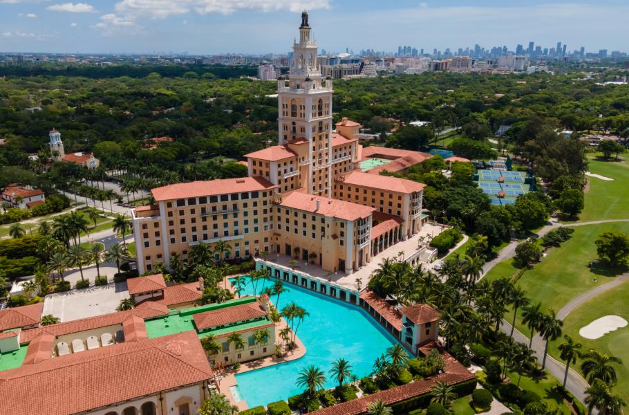 Vaší pozornosti by neměly uniknout ani dvě tamní ikony: V první řadě se jedná o pompézní Biltmore Hotel z roku 1926, jehož centrální věž ční do výšky 90 metrů a vznikla podle slavné Giraldy ve španělské Seville. Budově dále dominuje největší hotelový bazén v USA, s rozlohou 2 136 metrů čtverečních a s objemem 2,2 milionu litrů. Druhou pozoruhodnost v Coral Gables představuje Benátské koupaliště s vlastním pramenem vody, které Merrickovi muži vybudovali v místě bývalého lomu.