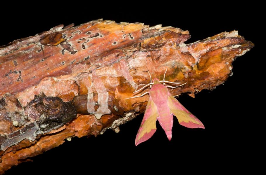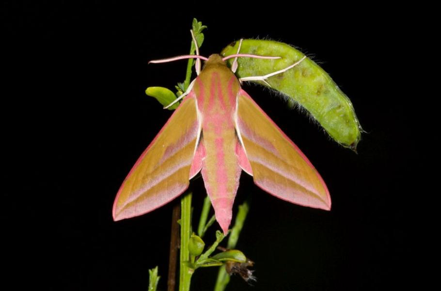 Lišaj vrbkový (Deilephila elpenor) je běžný druh, hojný v podhůří. Motýl v podstatě sleduje rozšíření dvou rostlin, na nichž se živí housenky – vrbovky chlupaté a vrbky úzkolisté. (foto: Denisa Mikešová - se souhlasem k publikování)