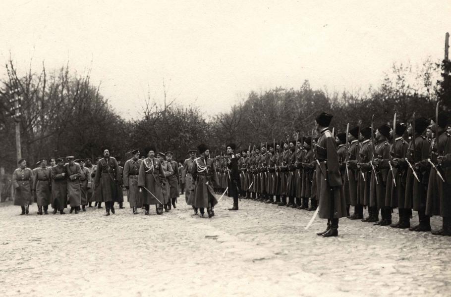 A právě ve společnosti kozáků se panovník nechal často fotografovat a navíc se často objevoval na veřejnosti v kozácké uniformě, do níž také oblékal svého syna, careviče Alexeje. V prvních měsících Velké války pak Mikuláš II. vyprovázel některé formace do pole, účastnil se modliteb před odchodem a vyzýval své muže ke statečnosti.