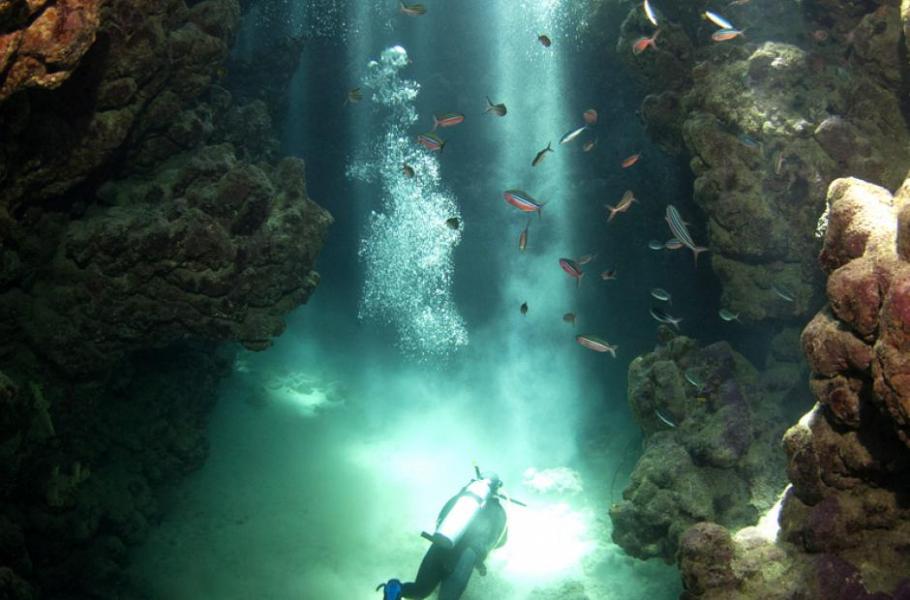 Jeskynní potápění představuje jednu z nejnebezpečnějších variant tohoto sportu. Na druhou stranu můžete narazit na překrásné scenérie, v nichž paprsky světla vykreslují stále se měnící vodní sloupy v kamenném světě pod hladinou.
