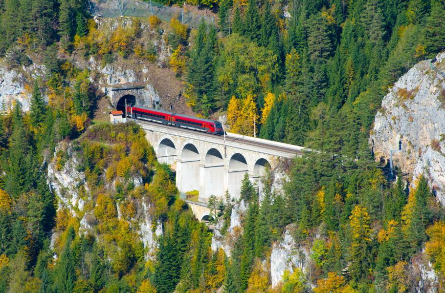Na trati přes průsmyk Semmering překonávají vlaky mimo jiné 129 kamenných či železných mostů. (foto: Shutterstock)