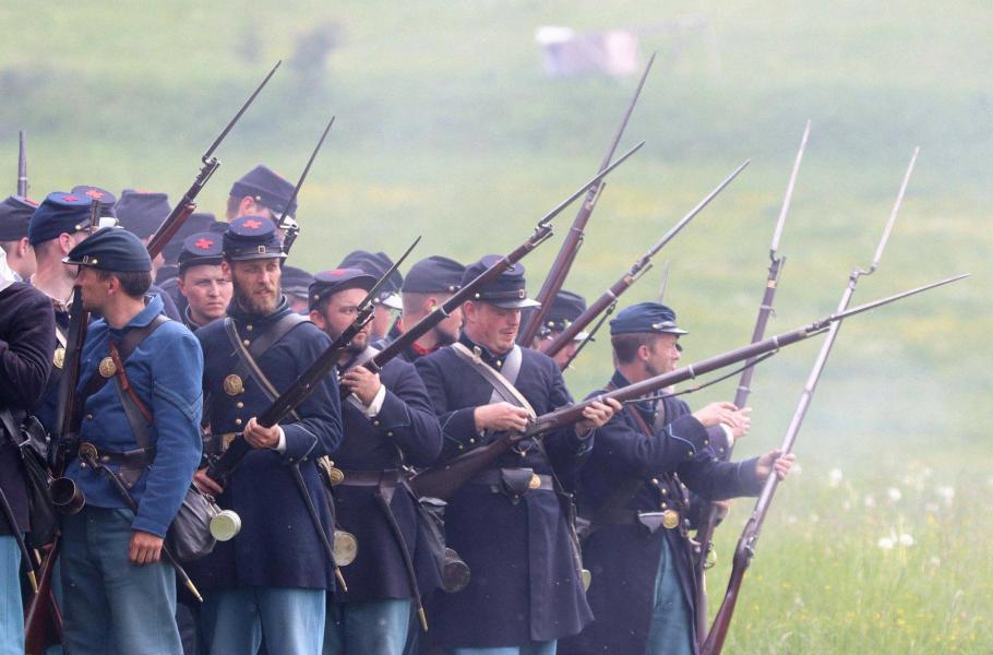 Seveřanská jednotka v bitevní vřavě. Fotografie reenactorů z akce pořádané CACWA – Českou asociací americké občanské války. (foto: Shutterstock)