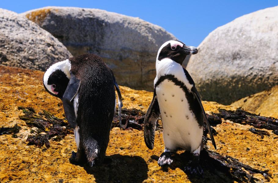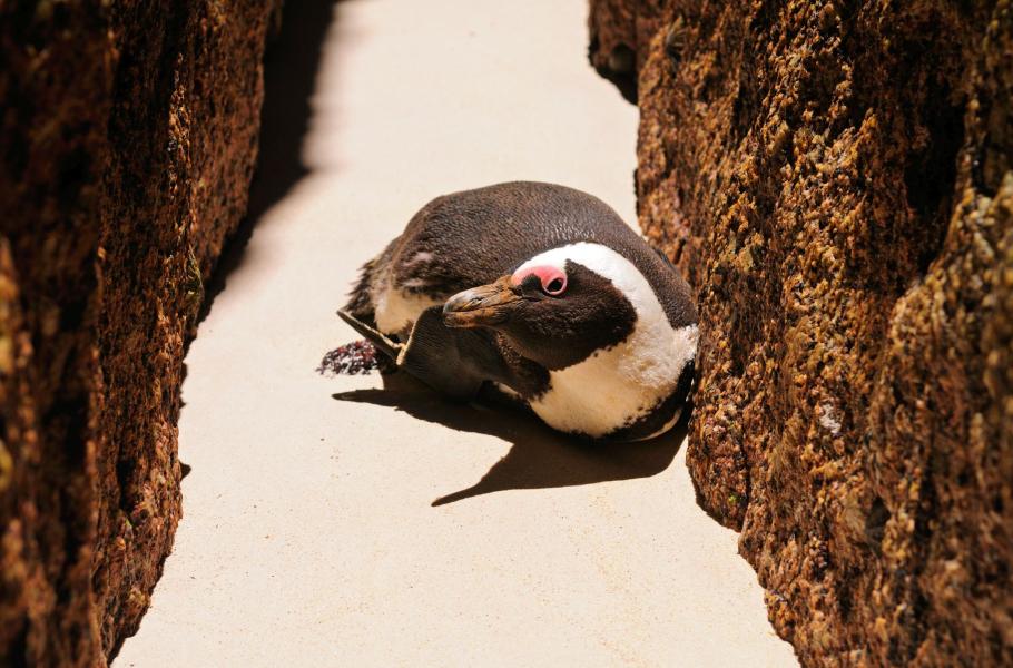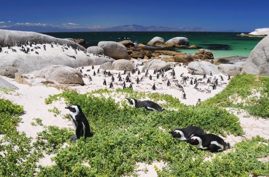 Tučňák brýlový se vyskytuje pouze tady u jihoafrického pobřeží. Největší dvacetitisícová kolonie obývá nedaleký ostrov Robben Island.