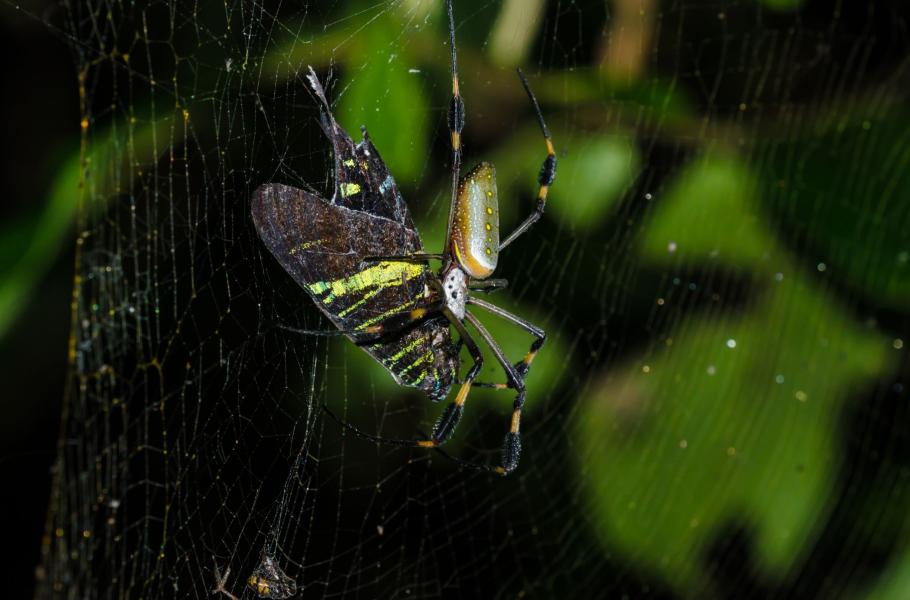 Stanice je obklopena deštným pralesem a spí se tady pod moskytiérou na tenkých molitanových matracích položených na dřevěné podlaze. Je těžké najít místo, kde z trámů nevisí pavučiny obřích nefil – velkých barevných pavouků s nápadně chlupatýma nohama. Náš odpočinek je ale krátký. Po čtvrté ráno přehlušují noční zvuky pralesa vřešťani, kteří si křikem vymezují teritorium. Vstáváme s nimi a vyrážíme k deltě řeky, kde je po ránu šance zahlédnout tapíry překonávající řeku. Štírům podobní krabovci utíkají před světlem čelovky po kmenech pralesních velikánů zpět do úkrytů.