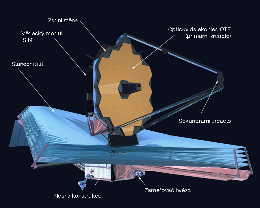 Hlavní části Vesmírného dalekohledu Jamese Webba (foto: NASA, CC BY 4.0)