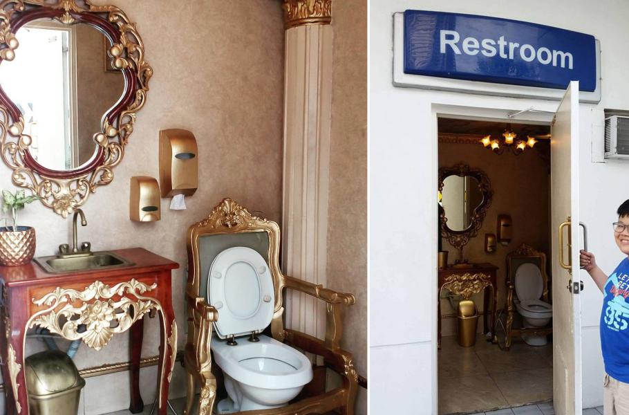 Toaleta na čerpací stanici obvykle není místem, kde bychom chtěli trávit více času, než je nezbytně nutné. Neplatí to ale pro toaletu na filipínské benzínce nedaleko Quezon City. Ta naopak vypadá jako z královského paláce.