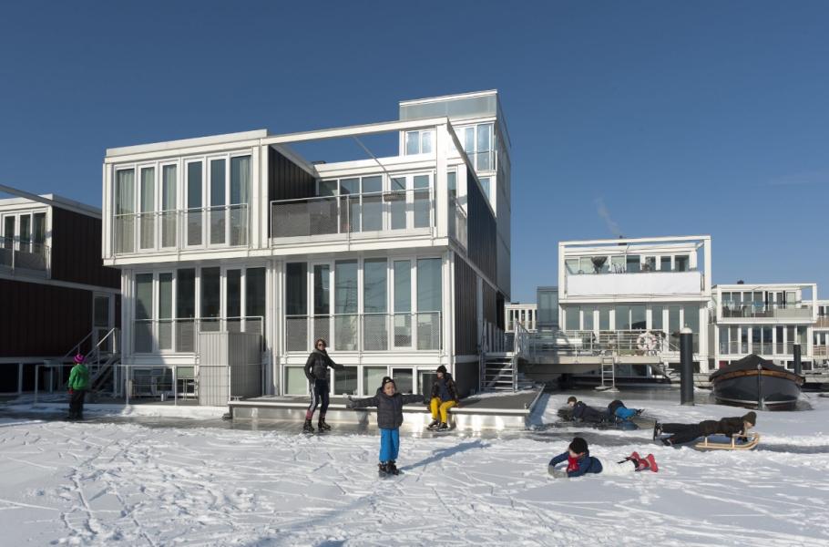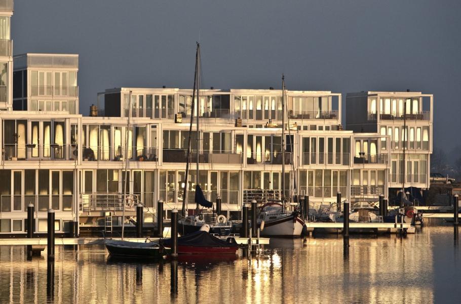 Na východě Amsterdamu roste nová obytná čtvrť. Nejde ale o běžnou zástavbu – Waterbuurt, jak se nové čtvrti přezdívá, totiž vyrůstá na vodní hladině. Na rozdíl od hausbótů jde o plně stacionární obydlí, která jsou připevněná k ocelovým pilotům a přístupná z mola. S měnící se výškou hladiny jezera IJmeer se tak nové domy pohybují jen po svislé ose.