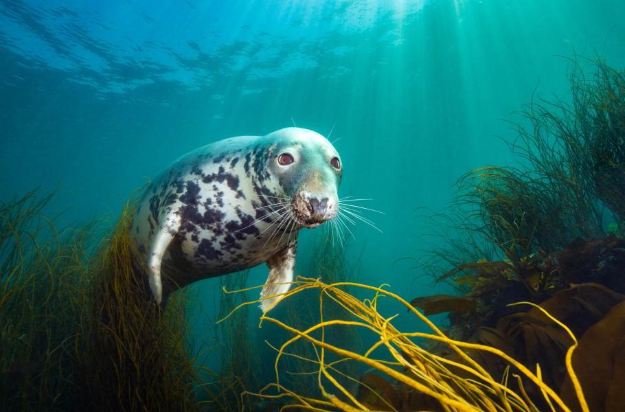 Severní Devon má podle Davida Alperta jedno z nejkrásnějších pobřeží v Británii. Loni tam proto strávil dva měsíce a vydával se pod hladinu nesmlouvavého moře – až nakonec pořídil vítěznou momentku tuleně kuželozubého. (foto: UPY, David Alpert)