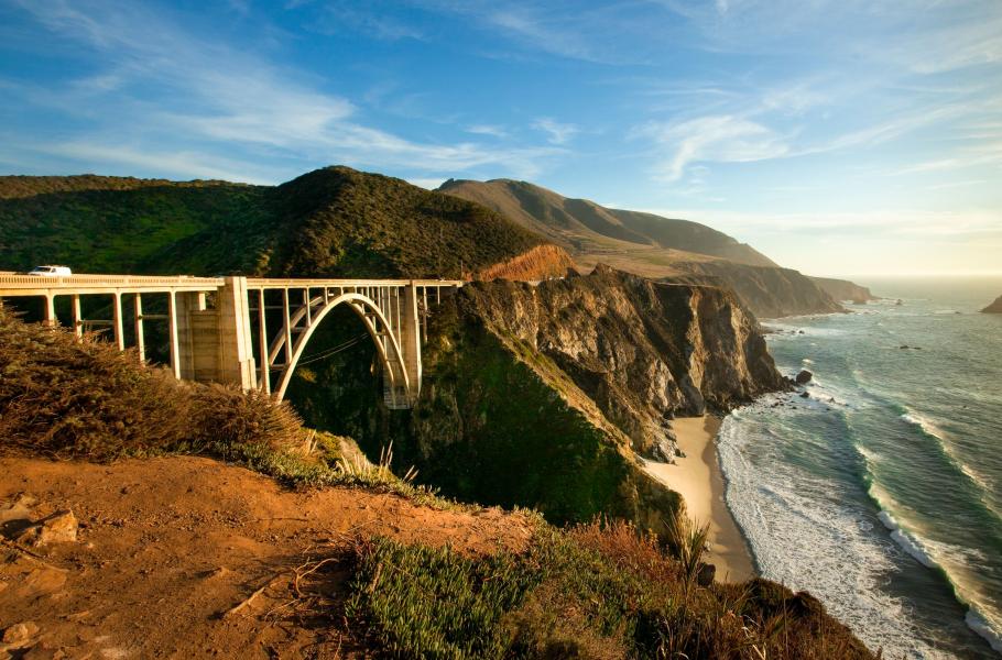 Oblast Big Sur, kam dále směřuje naše cesta, je historicky jedním z nejméně osídlených míst v Kalifornii. Silnice podél pobřeží – známá Highway 1 – byla vybudována teprve začátkem 20. století a dnes je považována za jednu z nejkrásnějších scénických cest v USA. Nádherné pobřeží se však nedoporučuje obdivovat za jízdy kolem strmých skalnatých srázů nad příbojem divokého Pacifiku. Pro ten účel jsou zde vybudována odpočívadla.