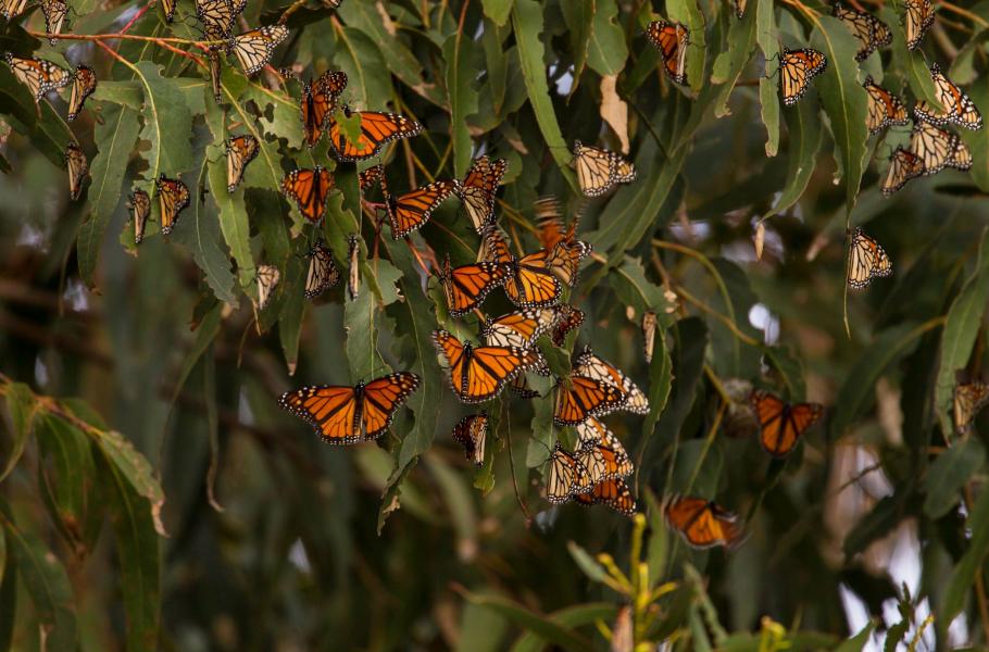 Kromě tahu několika druhů velryb je u pacifického pobřeží Kalifornie možné sledovat i migrace zcela jiného druhu a rozměrů. Motýl monarcha stěhovavý (Danaus plexippus) je znám každoroční poutí do středního Mexika. Motýli se tam přesouvají v obrovských hejnech, přežívají na jihu zimu a na jaře se opět vrací do svých líhnišť v Kanadě. Na téhle trase jsou pro motýly vybudována podél kalifornského pobřeží mnohé útočiště. U nich dobrovolníci vysvětlují návštěvníkům důležitost ochrany míst, kde monarchové hledají oddech a ochranu na své dlouhé cestě. Podél středního pobřeží Kalifornie jsou takovými místy například Pacific Grove v městečku Karmel nebo Monarch Butterfly Grove na pláži Pismo.