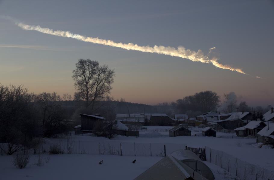 Čeljabinský meteorit asi jednu minutu poté, co vstoupil do zemské atmosféry. (foto: NASA, Alex Alishevskikh, CC BY 4.0)