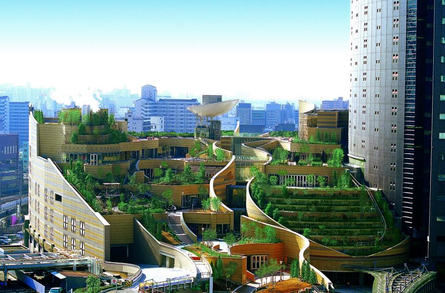 Výše zmíněná dobrodružná procházka zahradami, mezi útesy a vodopády se odehrává celkem v osmi úrovních, přičemž nejnižší patro plynule přechází do ulice. Celé obchodní centrum se 120 obchody tvoří v podstatě jednu obří stoupající střechu, s okouzlující krajinou a mnoha místy vybízejícími k odpočinku. K dispozici je dokonce pozemek, kde lze pěstovat vlastní zeleninu.