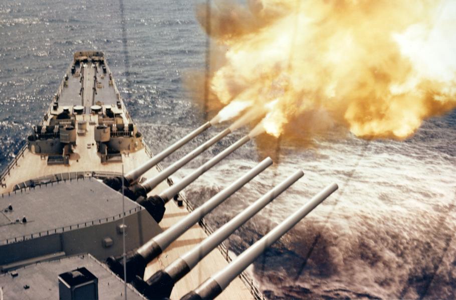 S pomocí těžkých děl ráže 406 mm se konečně dařilo likvidovat nepřátelská palebná postavení v okolí Wonsanu.