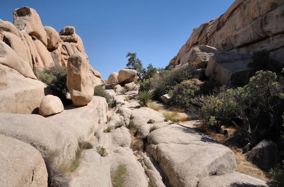 K nejzajímavějším a zároveň snadno přístupným místům parku patří třeba Hidden Valley, na jehož asi 1,5 km dlouhé stezce můžete obdivovat opravdu působivé kamenité útvary. Další zajímavou okružní trasou je Baker Dam, s malou vodní přehradou, vytvořenou kolem roku 1900 jako napajedlo pro dobytek. Nádrž je dnes po většinu roku vyschlá, ale když se v jarních měsících naplní dešťovou vodou, je velikým lákadlem pro místní faunu a tedy vhodným pozorovacím stanovištěm. Trasa je navíc význačná tím, že ukazuje téměř všechny mikrohabitaty Mohavské poušte, které jsou pro park typické. Právě zde je pravděpodobně i největší koncentrace juk a najdete tady i jedny z mála petroglyfů, které jsou dokladem někdejší přítomnosti původních obyvatel Ameriky.