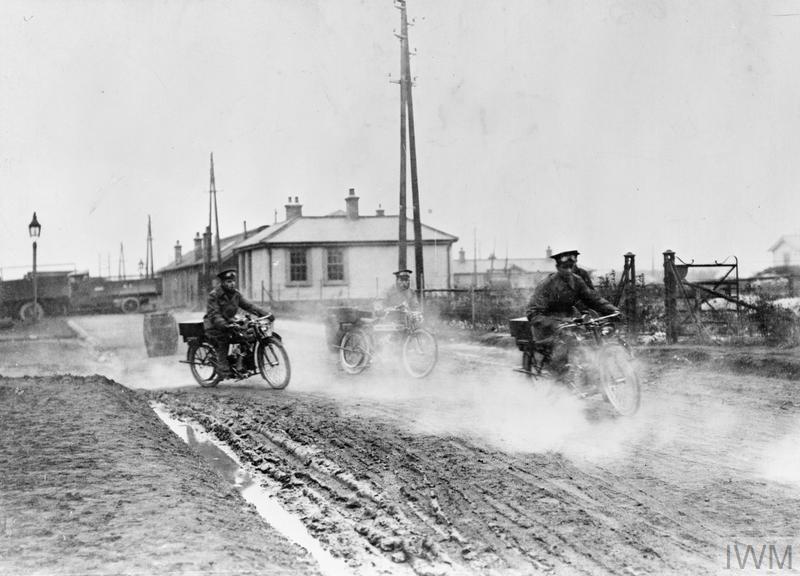 Vůbec prvními jednostopými vozidly na frontě se staly stroje britských značek Douglas a Triumph, zatímco na druhé straně fronty začali Němci zavádět do výzbroje typy NSU a TWN. Nemluvíme zde o žádném širokém využití – například standardní britská pěší divize měla v roce 1915 ve stavu 19 motorek, které rychle prokázaly svou hodnotu. Motospojky dokázaly doručovat rozkazy a depeše mezi velením a frontovými jednotkami rychle a spolehlivě. Kromě využití v zázemí probíhaly i první pokusy s útočným nasazením.