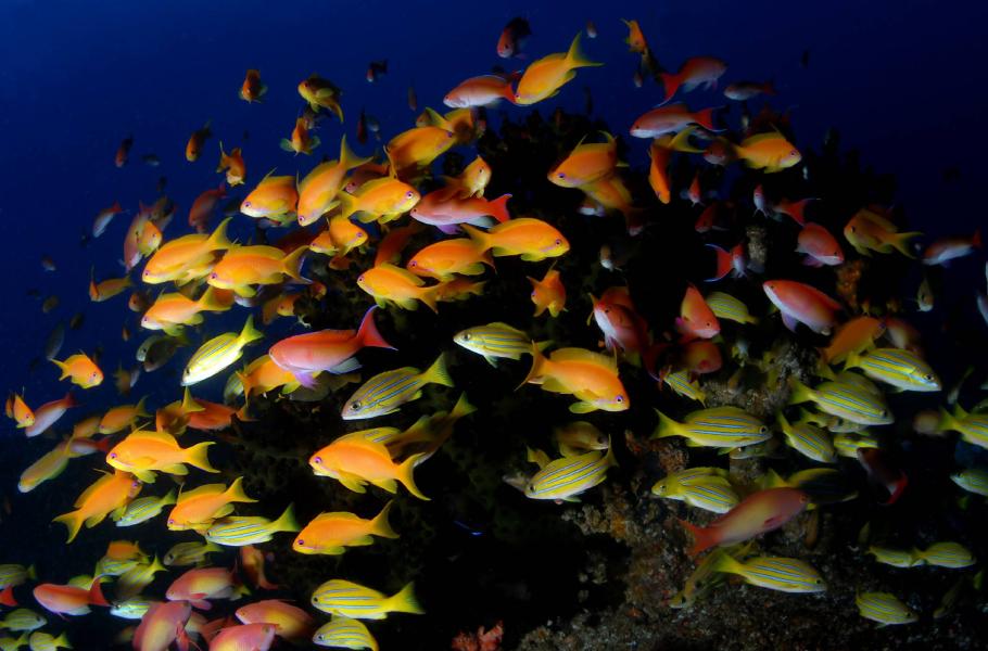 Přes početné hejno žlutých parem opět vidím jednu ze dvou mant, která zrovna pózuje kolegovi s kamerou. Já jsem stále ve dvaceti pěti metrech a on se vznáší sotva tři metry pod hladinou. Manta Reef opět nezklamal. Ba naopak! Šokoval svou modrou vodou. Svým způsobem mám zelenou vodu rád. Někdy je tak mystická, až z ní jde strach, ale dnes jsem blahořečil všem mořským bohům v popředí s Neptunem za jejich laskavost.