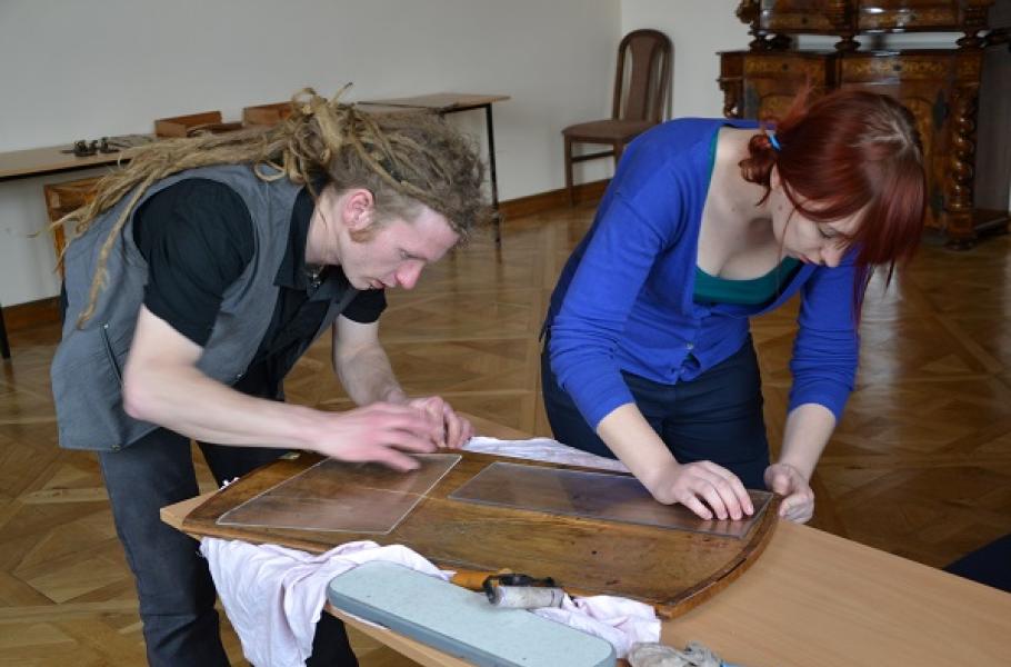 Zatímco v uplynulých letech vrátili restaurátoři původní podobu více než desítce cenných historických předmětů, letos zaměří svou pozornost na dva klenoty ze zámeckého mobiliáře. Studenti, kteří si na Slavkově plní odbornou praxi, budou pracovat na historizujícím příborníku s řezbovanými prvky a ořechovém jídelním stole.