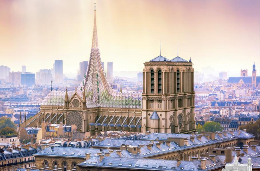 Mezinárodní zájem architektů vyvolalo oznámení tehdejšího premiéra Édouarda Philippa, že nová podoba svatostánku vzejde z celosvětové soutěže. Zpočátku byla totiž ve hře varianta, že Notre-Dame jednadvacátého století bude odpovídat moderním architektonickým trendům. Na pařížské radnici se tak scházely vizualizace, které u členů hodnotící komise – a potažmo i veřejnosti – okamžitě vzbudily pozdvižení.