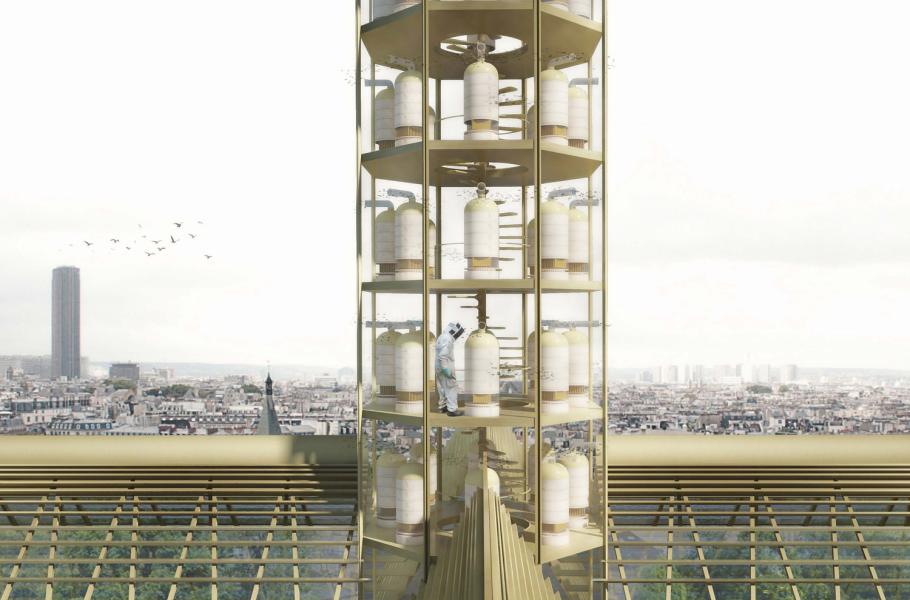 Samozřejmě šlo spíš o nadsázku než vážně míněný návrh, což se ovšem nedá říct o představě belgického architekta Vincenta Callebauta, jenž chtěl na střeše svatostánku vybudovat obří akvaponický skleník s průhlednými solárními panely. Uvnitř by tak vznikly ideální podmínky pro pěstování ovoce i zeleniny a roční výnosy prý měly dosáhnout až jednadvaceti tun. Díky fotovoltaice by byl navíc Notre-Dame energeticky soběstačný a jeho produkce by pokryla i spotřebu okolních domů.
