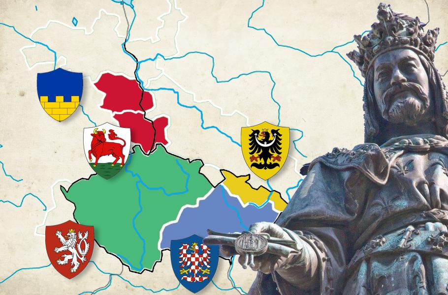 Rok 1348 byl pro Karla IV. jeden z nejplodnějších. Začal budovat Karlštejn i Nové Město pražské, založil univerzitu, a hlavně vytvořil svazek zemí patřící svatováclavské koruně. Jednotlivé lenní závazky a vztahy mezi zeměmi tak už nebyly vázány na osobu panovníka, ale patřily k státu jako celku. Tento krok zajistil mnohem větší stabilitu soustátí, ovšem kladl i nároky na panovníka samotného. Vladař najednou nebyl tím, komu země patří, ale jen správcem koruny. Právní pojem země Koruny české Karla IV. výrazně přežil. Svazek zanikl až se vznikem Československa a se zánikem české monarchie roku 1918. O které připojené země jsme ale od Karlových dob přišli?