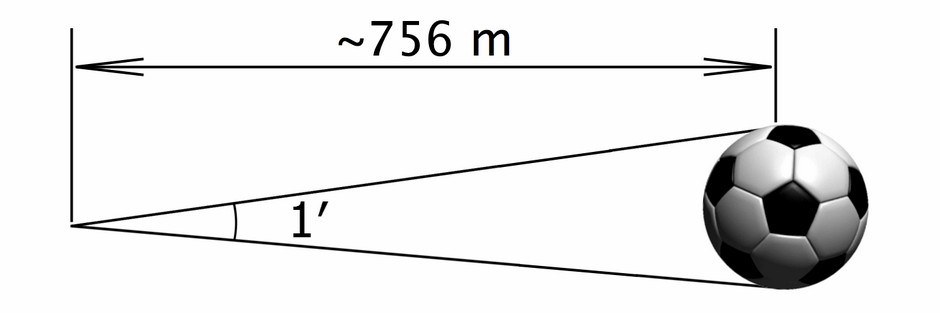 Zdroj:Přímou velikost objektu na obloze změřit jednoduše nelze. Dané informace můžeme získat jen zprostředkovaně z dalších údajů, mezi něž typicky patří zdánlivá velikost na nebi. Ta se však nevyjadřuje v metrech ani jiných délkových jednotkách, ale definuje se jako úhel, pod nímž objekt vidíme.