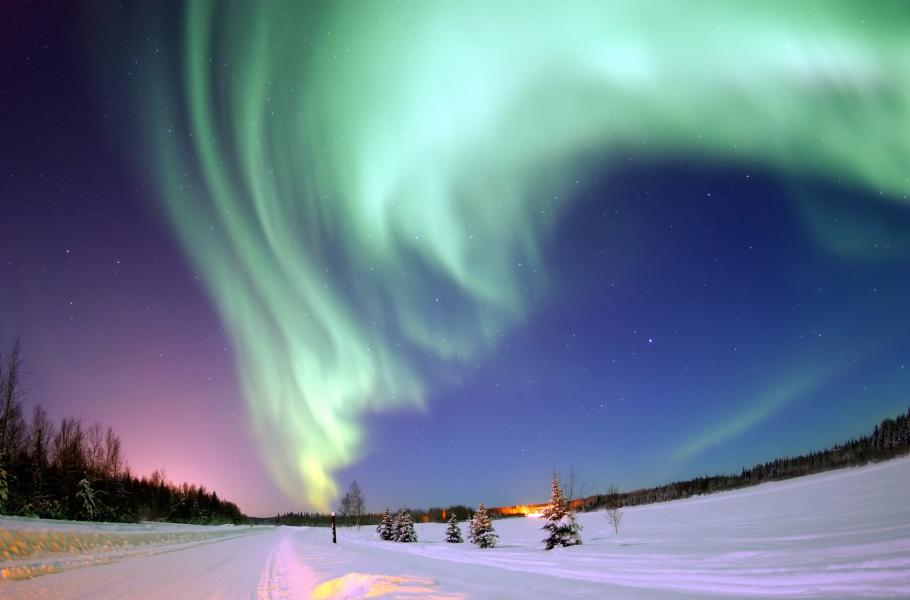Polární záře nad leteckou základnou Eielson na Aljašce. (foto: Wikimedia Commons, U.S. Air Force, PDM 1.0)