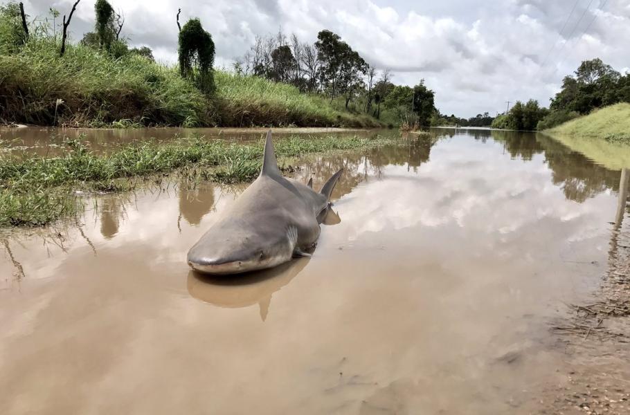 Reportér Philip Calder právě dokumentoval následky cyklonu, který udeřil na severovýchod australského pobřeží poblíž městečka Ayr. V krajině narazil na obvyklé stopy po nesmlouvavém živlu – byla posetá kalužemi, poničená větrem a hlavně pustá. Pak se mu však naskytl pohled, jaký by si nejspíš nepředstavil ani v nejdivočejším snu: Uprostřed cesty před ním ležel žralok.