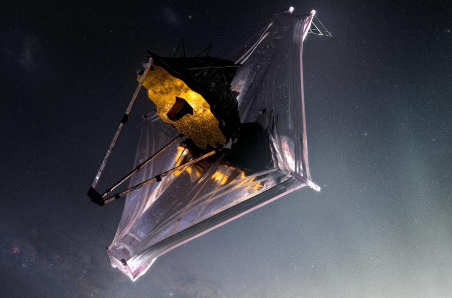 Vesmírný dalekohled Jamese Webba objevil malé obry z dávného vesmíru. (ilustrace: NASA GSFC/CIL/Adriana Manrique Gutierrez, CC BY 2.0)