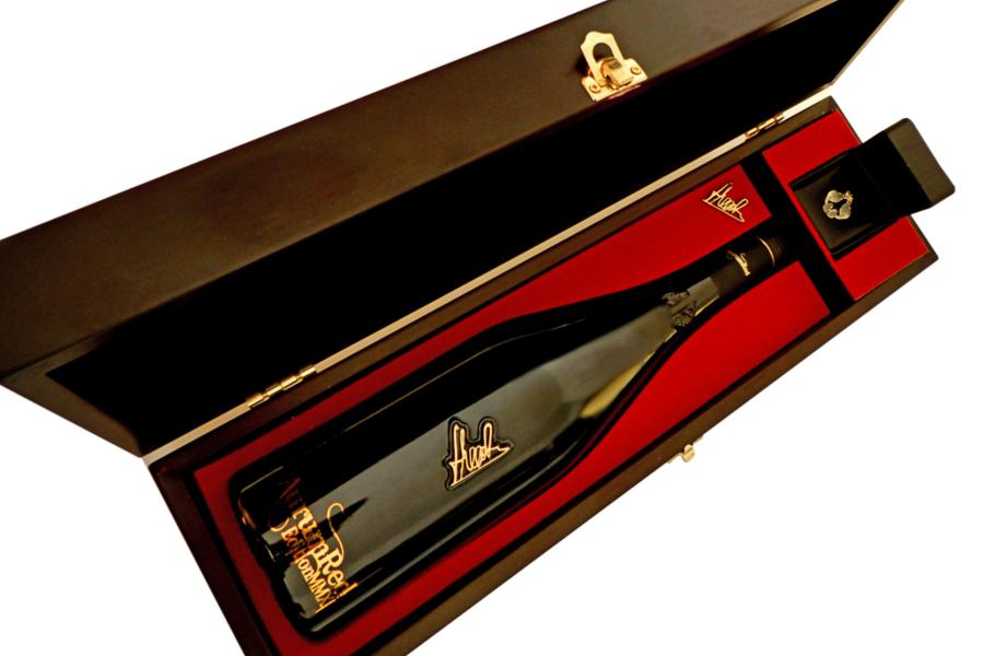 Na exkluzivitě vína AurumRed Gold dodává i originální lahev. V ručně vyrobené dřevěné kazetě najdou movití zákazníci navíc i malé zlaté překvapení – ručně vyráběný šperk z 18karátového zlata.