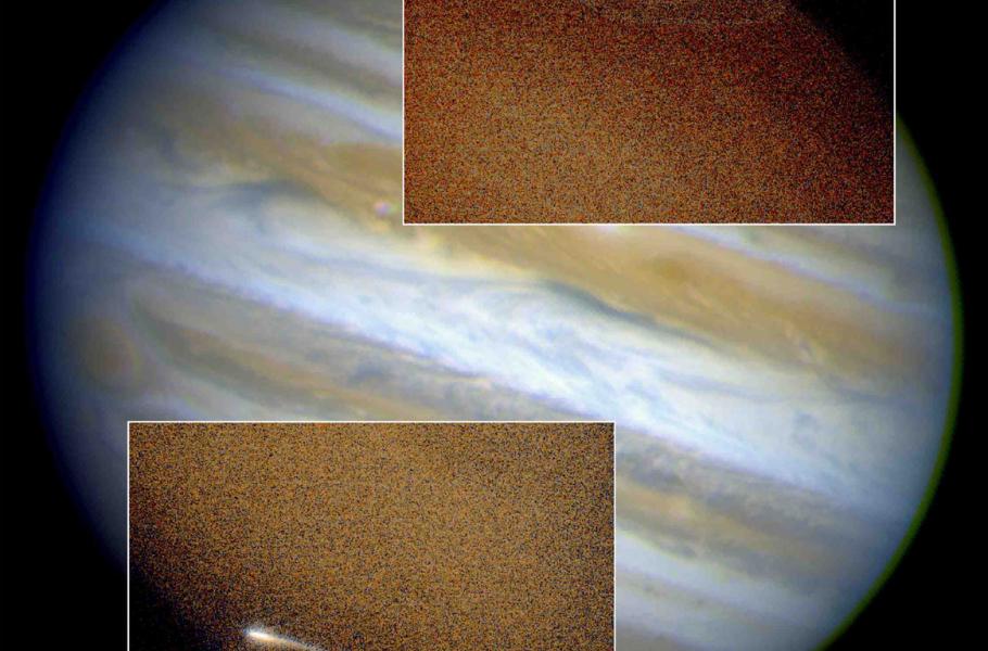 Hubbleův kosmický teleskop (HST) se zaměřil nejen na pořizování detailních snímků největší planety Sluneční soustavy, ale též na sledování polárních září v okolí jejího severního i jižního pólu. Fotografie oválných polárních září (ve výřezech) na Jupiteru vznikly v oboru ultrafialového světla pomocí spektrografu STIS. A přestože HST zachycoval zmíněné atmosférické úkazy na obří planetě od roku 1990, aparatura STIS je desetkrát citlivější. Publikované snímky pocházejí ze září 1997.