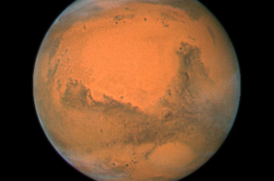 Také Mars se stal častým a vděčným cílem kamer HST. Koncem roku 2007 se planeta na své dráze kolem Slunce dostala relativně blízko k Zemi a byla dobře pozorovatelná i v malých amatérských dalekohledech. Proto se na ni zaměřil také Hubble. Snímek pořídila ze vzdálenosti 55 milionů kilometrů Wide Field and Planetary Camera 2: Mars fotografovala v průběhu 36 hodin, aby postupně zachytila celý jeho povrch; připojená fotografie zahrnuje asi třetinu celkového marsovského glóbu.